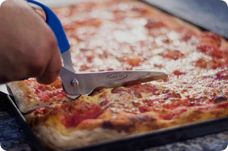 Atunci când tăiați pizza direct pe foaia de copt sau pe grătar, este util să folosiți foarfece speciale pentru pizza. Foarfece italiene GI.METAL AC-FR cu o lungime a lamei de 12 cm este instrumentul ideal pentru această sarcină.