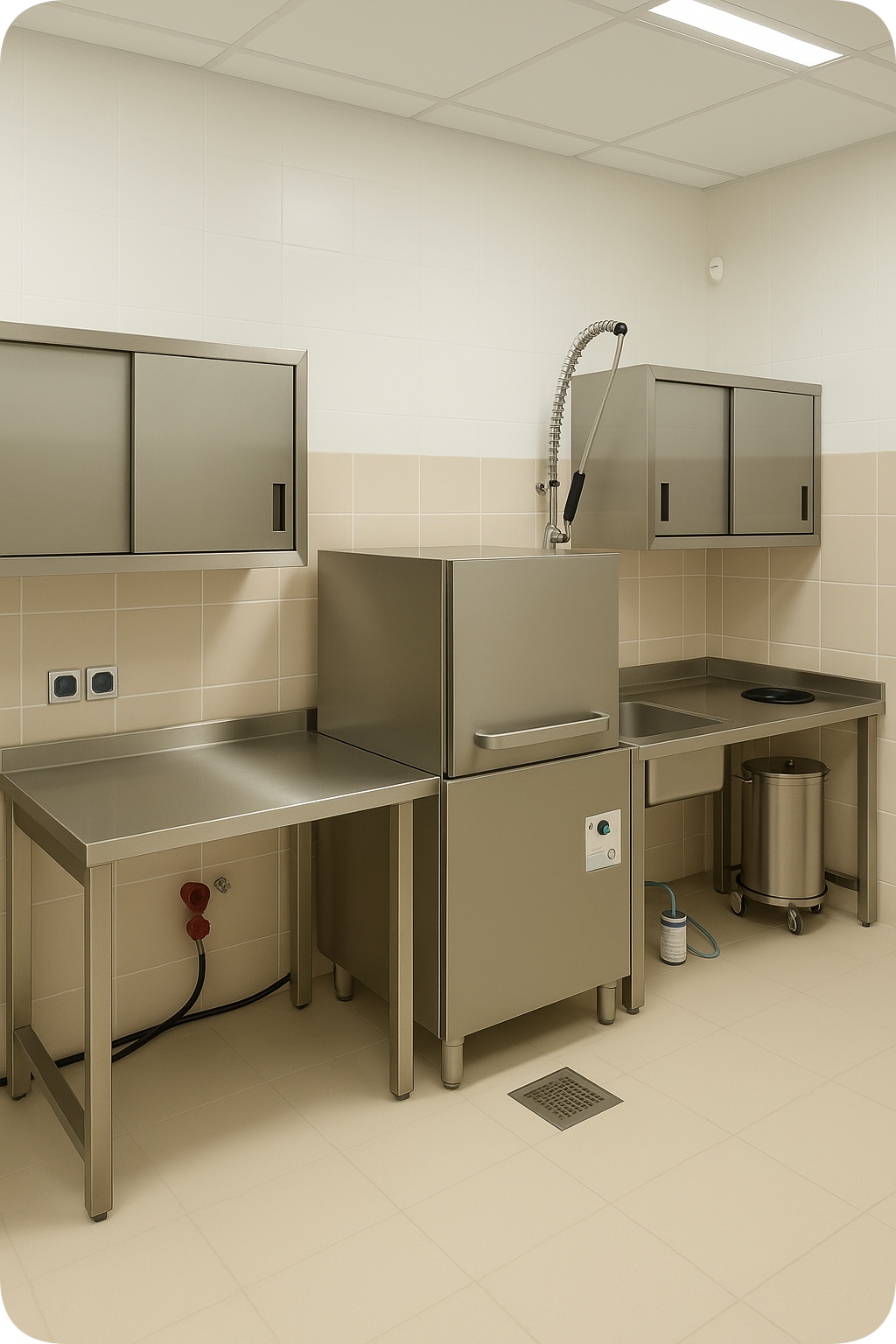 Punerea în aplicare a HACCP trebuie să se bazeze întotdeauna pe ipoteze pregătite corespunzător. Dispunerea funcțională a bucătăriei joacă un rol esențial. Separarea zonelor curate de cele murdare, accesul convenabil la apă curentă și ventilația adecvată permit asigurarea ordinii și igienei în activitatea zilnică. La fel de importantă este și elaborarea unor proceduri clare de spălare și dezinfectare, precum și depozitarea agenților de curățare care elimină riscul de contact cu alimentele.