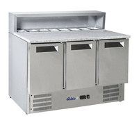 Masă frigorifică cu 3 uși pentru pizza cu suprastructură, 368 l, oțel inoxidabil, 2-8°C | HENDI 236215