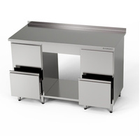 Masă de lucru din oțel inoxidabil cu raft și 2 blocuri de 2 sertare 270x70x85 cm | FORGAST