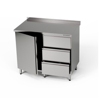 Masă de lucru din oțel inoxidabil cu dulap și bloc cu 3 sertare 100x60x85 cm | FORGAST