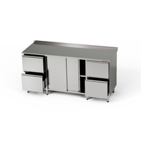 Masă de lucru din oțel inoxidabil cu dulap și 2 blocuri de 2 sertare 220x60x85 cm | FORGAST