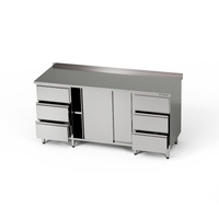 Masă de lucru din oțel inoxidabil cu dulap și 2 blocuri de 3 sertare 210x70x85 cm | FORGAST