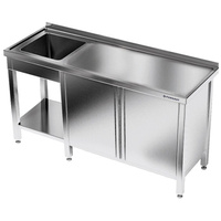 Masă inox cu chiuvetă cu 1 vas și dulap 240x70x85 cm | FORGAST