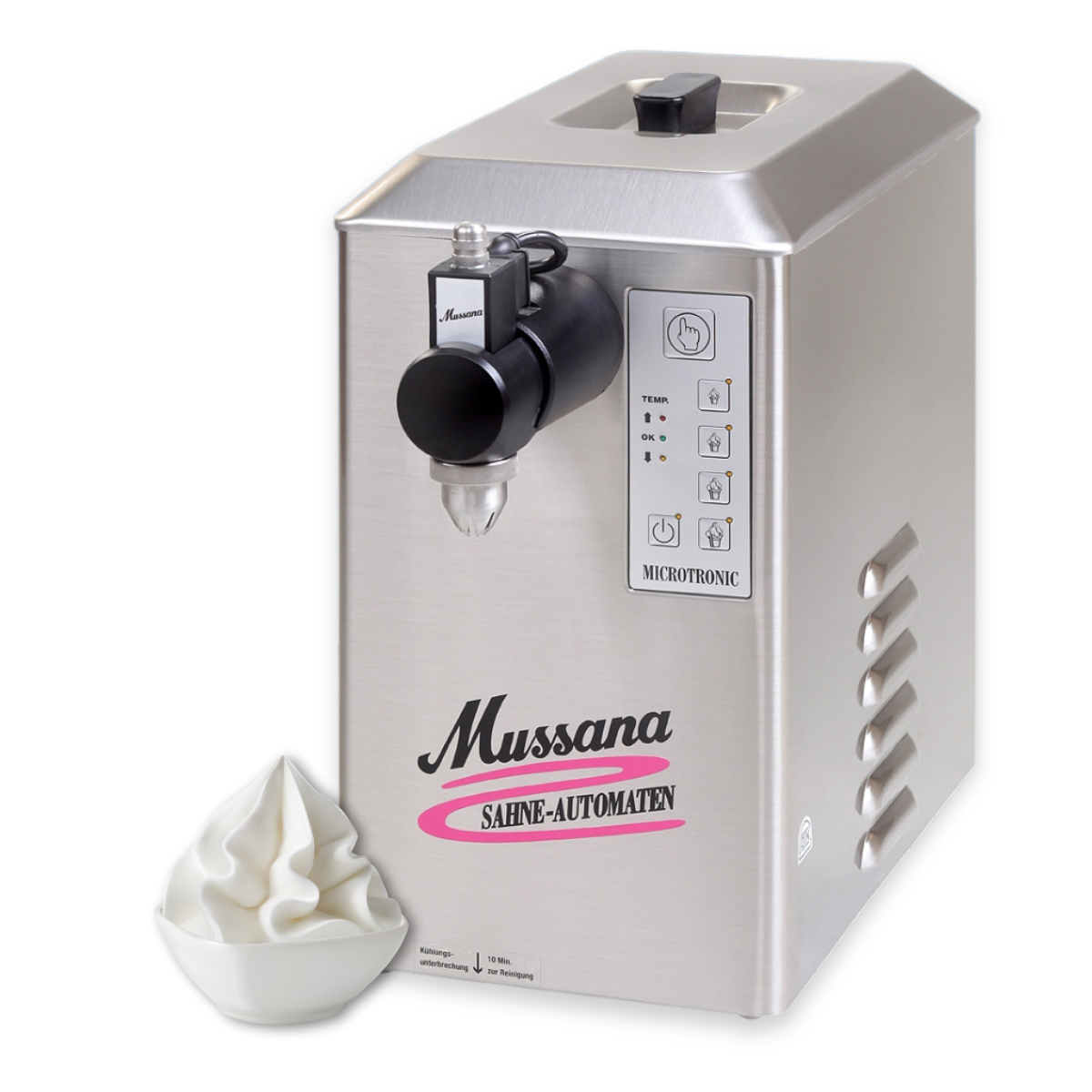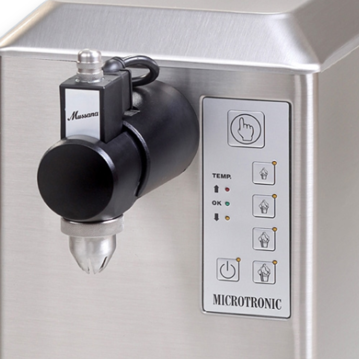 Mussana Pony permite porționarea automată datorită celor patru butoane – inclusiv unul individual și unul cu un ciclu de lucru de 3 minute. Aparatul oferă răcire intensivă până la capătul decorativ și reglare electronică și control al temperaturii, asigurând astfel baterea perfectă a frișcăi în orice condiții.