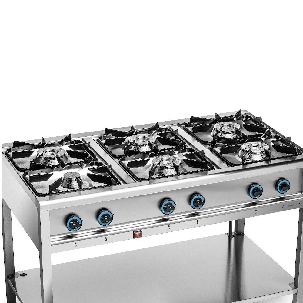 Aragazul pe gaz FORGAST FG09456 oferă o combinație între putere mare, fiabilitate și ușurință la curățare și utilizare. Datorită construcției bine gândite și gamei largi de puteri ale arzătoarelor, echipamentul este potrivit pentru orice bucătărie profesională, indiferent de dimensiune. Siguranța în utilizare, flexibilitatea la alegerea tipului de gaz și soliditatea construcției sunt garanția satisfacției pentru orice proprietar de unitate gastronomică.