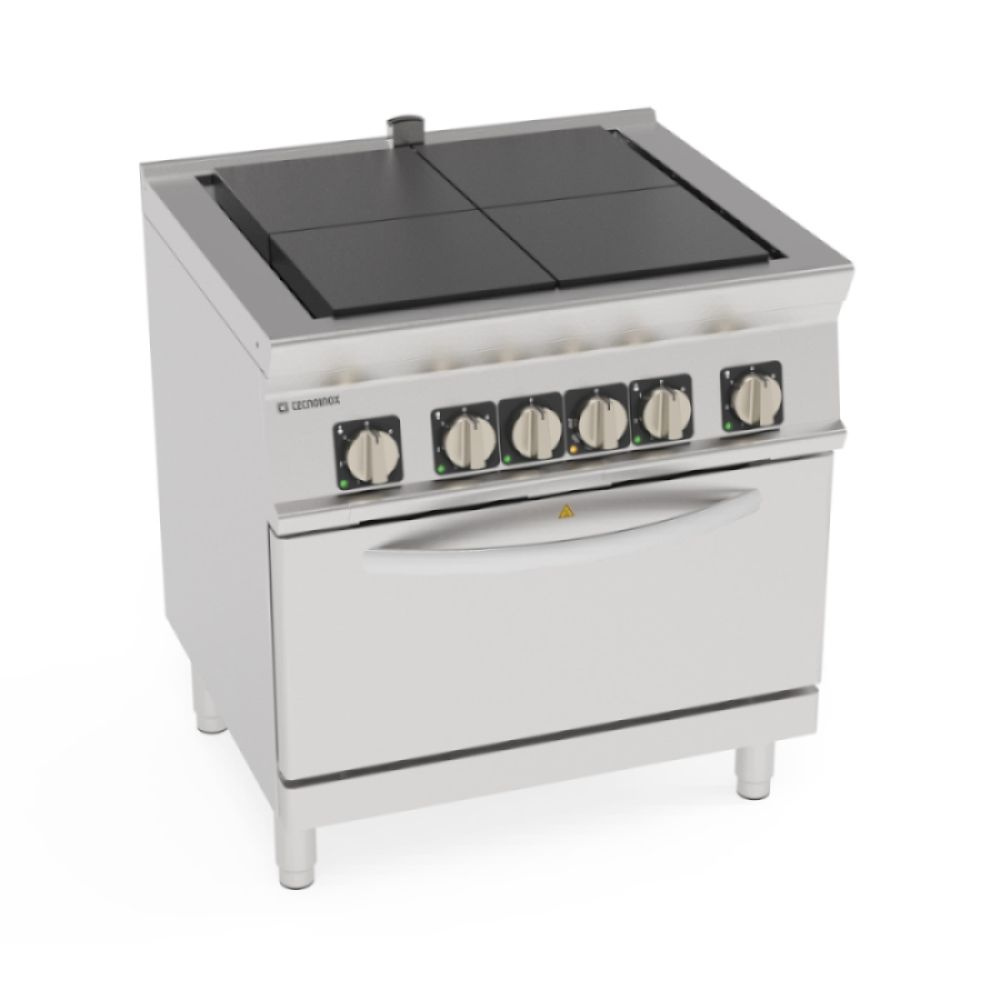 Model de bucătărie cu plită etanșă, blat turnat și placă turnată pentru o igienă mai bună. În plus, plăcile sunt pivotante coplanar pentru o manipulare mai ușoară. Dispozitivul are 6 niveluri de putere. Puterea zonelor de gătit este 4x3 kW. Dimensiunile plitei sunt 30x30 cm. Aparat echipat cu cuptor cu convecție, electric GN 1/1 (x5) cu un grătar și ventilator încorporat. Dimensiunile compartimentului cuptorului sunt 57x51,5x30 cm. Intervalul de temperatură al cuptorului 60-270 °C. Toate părțile bucătăriei, de la componente la materiale, sunt de origine europeană, iar rata de eșec depășește 99%. Cuptoarele electrice Tecnoinox nu sunt doar eficiente și funcționale, ci și design și robustețe într-unul singur, ideale pentru profesioniștii din catering.