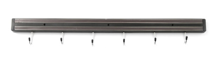 Bară magnetică pentru agățarea cuțitelor. Fabricată din polipropilenă. Două benzi magnetice. 6 cârlige.