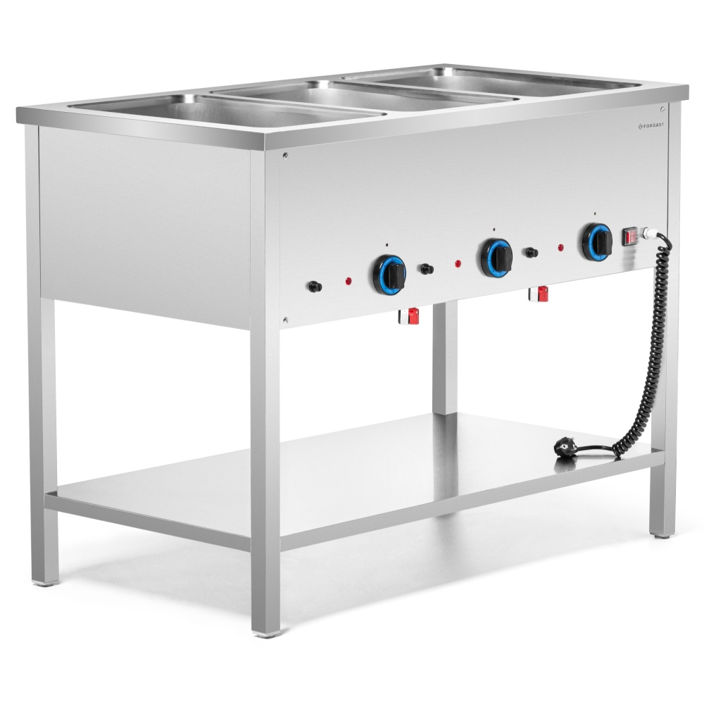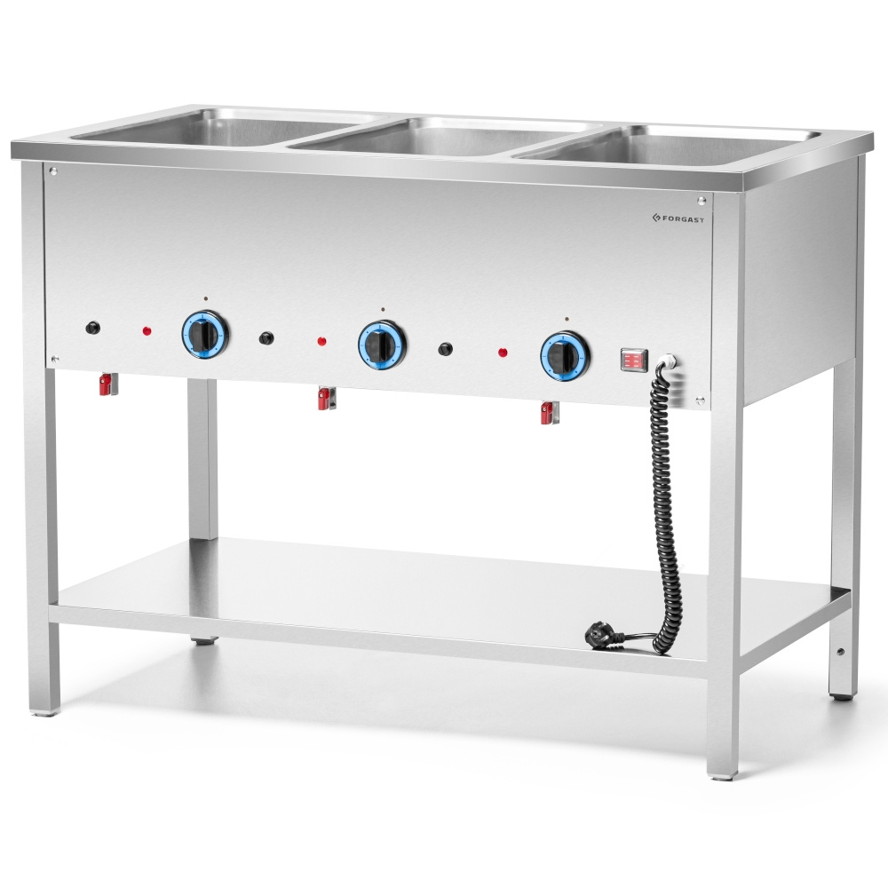 Bemar-ul electric Forgast este perfect pentru unități de catering de toate dimensiunile - de la baruri mici la bucătării mari de catering. Permite depozitarea și servirea convenabilă a alimentelor calde la prânzuri, bufete sau evenimente speciale. Camerele independente permit încălzirea simultană a unuia și a mai multor tipuri de alimente, facilitând astfel munca în bucătărie. Aparatul nu include containere GN, astfel încât să puteți selecta individual dimensiunile și configurațiile corespunzătoare în funcție de nevoile dvs.