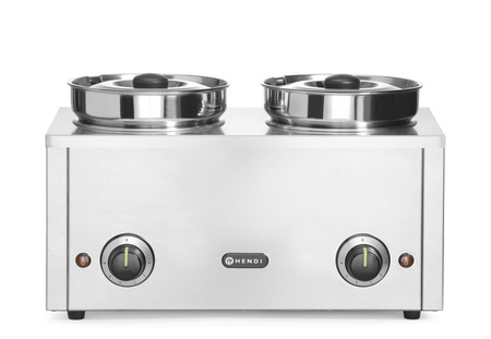 Thermosistem pentru supe și sosuri marca Hendi cu două posturi, de tip staționar, echipat cu recipiente cu capac din oțel inoxidabil cu diametrul de 200 mm. Produsele noastre se remarcă prin calitate foarte bună și versatilitate, fiind ideale atât pentru gastronomia mare, cât și pentru cea mică.