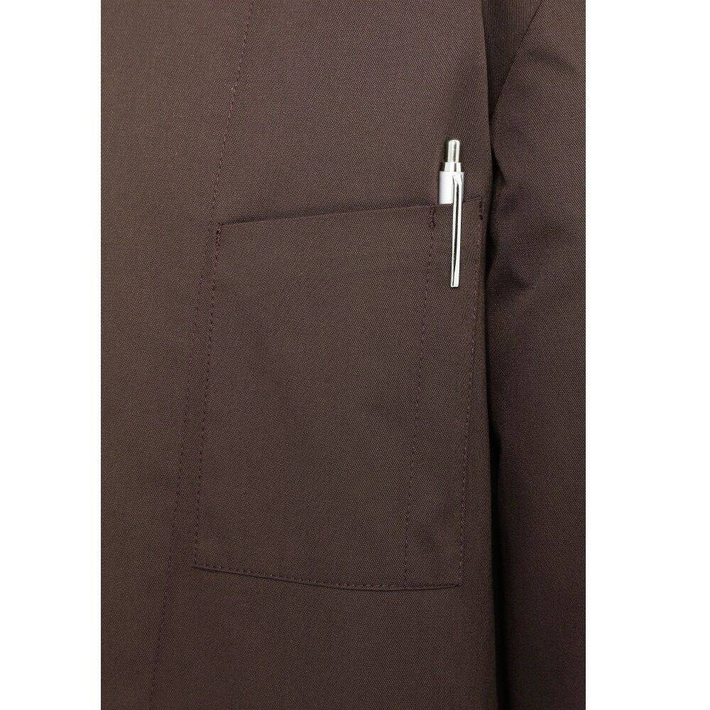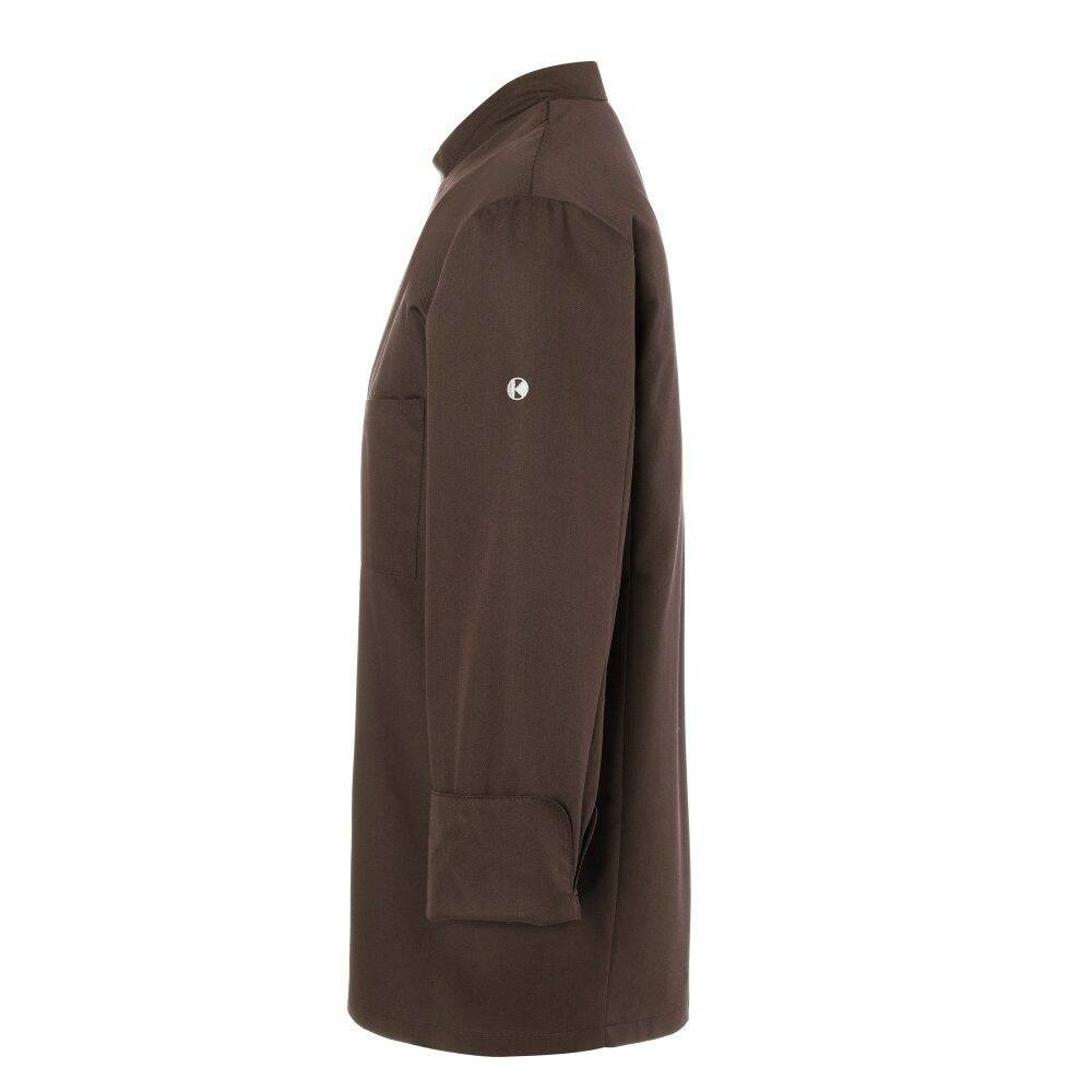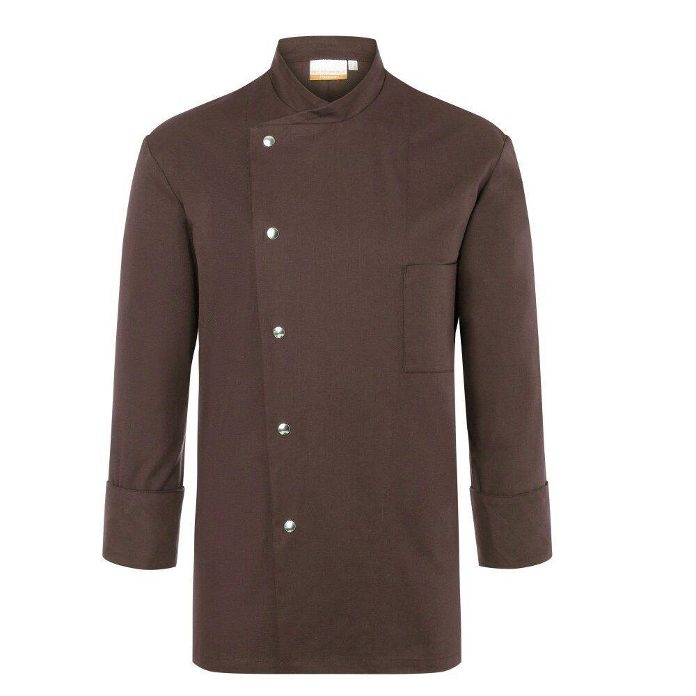 Bluză bucătar pentru bărbați Lars de la Karlowsky. Culoare maro deschis. Confecționată din 65% poliester și 35% bumbac. Țesătură diagonală. Bluză cu croială regular, datorită cusăturilor vieneze de pe spate. Accente suplimentare sub forma deschizăturilor la manșete și buzunar pe partea stângă a pieptului. Bluză se închide cu 5 nasturi și capse. Poate fi spălată industrial. Nu se albește. Disponibilă în mărimi de la 44 până la 66.