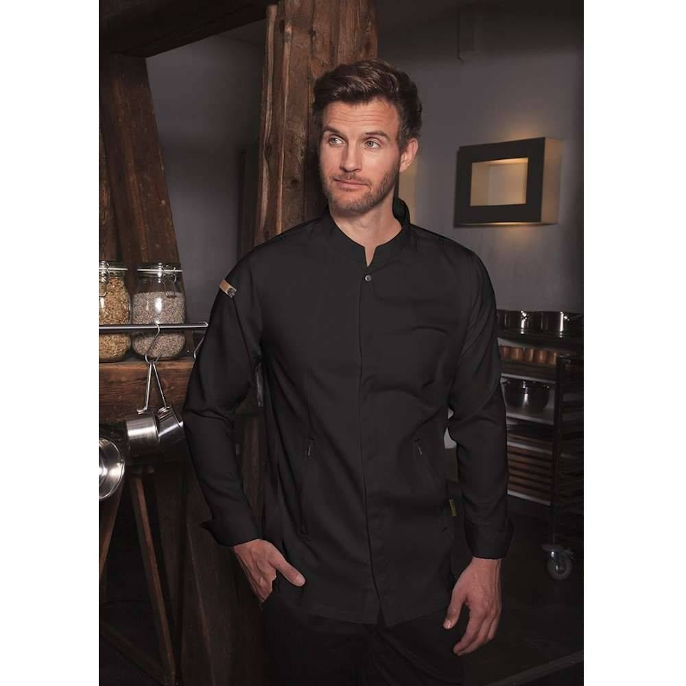 Bluză de bucătar pentru bărbați Green-Generation de la Karlowsky. Mâneci lungi. Culoare neagră.