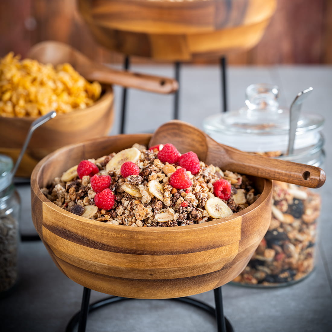 Bolul Acacia a fost proiectat pentru o gamă largă de utilizări – este potrivit atât pentru restaurante și hoteluri, cât și pentru întâlniri de familie sau petreceri. Pereții groși și solizi previn deformarea și asigură stabilitate în timpul utilizării. Nuanța naturală a lemnului de salcâm evidențiază caracterul unic al preparatelor, iar suprafața netedă facilitează curățarea și menținerea igienei. Produsul nu conține elemente suplimentare în set.