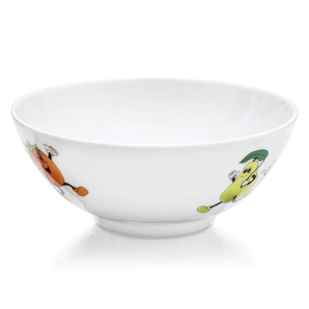 Bolul de porțelan Modermo Kids este un vas funcțional creat special pentru cei mai mici utilizatori. Se remarcă printr-un design colorat și vesel cu prieteni fructe și legume, precum și prin execuția solidă din porțelan de înaltă calitate. Este ideal pentru servirea supei, cerealelor de mic dejun sau deserturilor cu fructe, încurajând copiii să mănânce singuri.