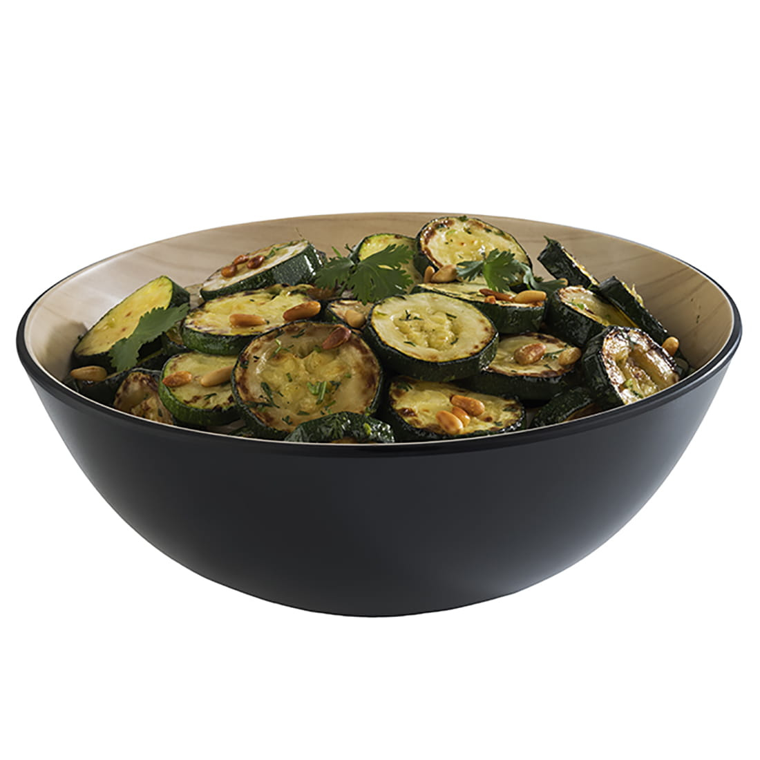 Bolul melaminat FRIDA este un vas funcțional destinat servirii profesionale a preparatelor în restaurante, hoteluri sau la bufeturi. Se remarcă prin designul elegant – suprafață exterioară mată, neagră și interior care imită lemnul, precum și prin finisajul atipic, înclinat al marginii, ce subliniază caracterul modern al produsului. Este ideal pentru prezentarea spectaculoasă a mâncărurilor, salatelor sau gustărilor.