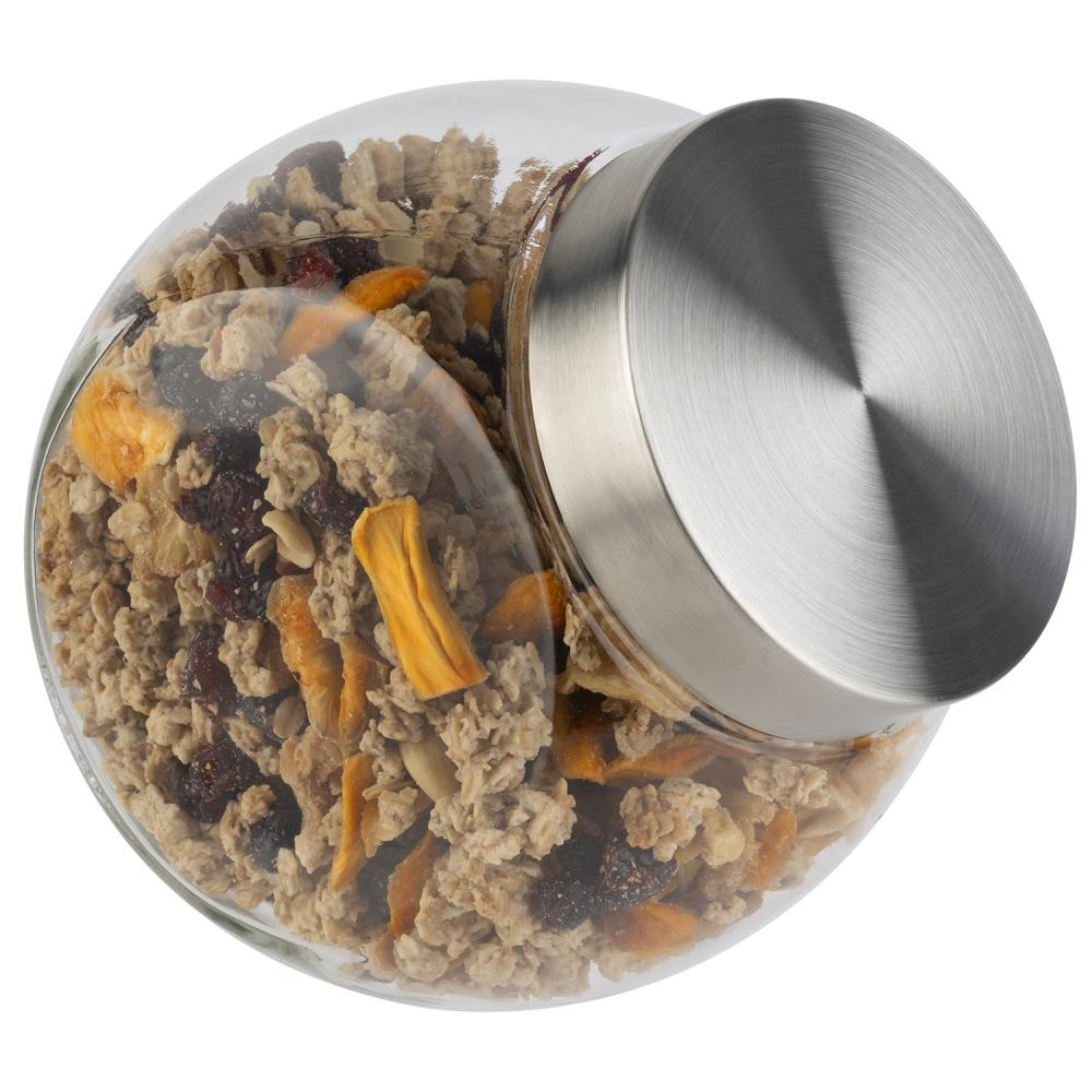 - Utilizare versatilă – borcanul este potrivit pentru depozitarea diverselor produse alimentare, iar designul său universal se potrivește oricărei bucătării sau bufet.