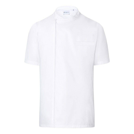 Cămașă de bucătar Basic cu mânecă scurtă de la Karlowsky. Culoare albă. Fabricată din 35% bumbac și 65% poliester. Țesătură diagonală. Partea din spate este realizată din material tip jerseu (structură tip plasă). Cămașa are croială dreaptă și închidere cu nasturi ascunși. Pe partea stângă a pieptului este aplicat un buzunar cu elastic. Se poate spăla la mașină și călca. Nu se recomandă uscarea în uscător sau albirea. Disponibilă în mărimi de la XS la 3XL