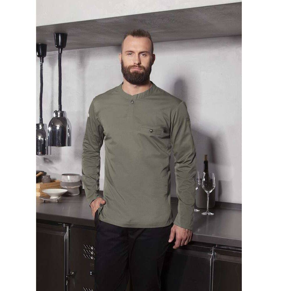 Cămașă de bucătar Performance de la Karlowsky. Mâneci lungi. Culoare salvie.