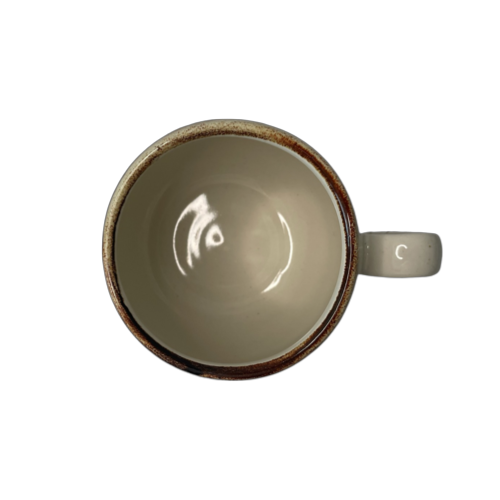 Cana este realizată din gresie ceramică cu o absorbție foarte scăzută, ceea ce îi conferă rezistență și durabilitate pe termen lung. Fiecare exemplar este decorat manual, folosind tehnica stropirii și a pensulei, ceea ce îi oferă un caracter autentic și unic. Forma ergonomică asigură confort în utilizare, iar culoarea crem evidențiază versatilitatea vasului.