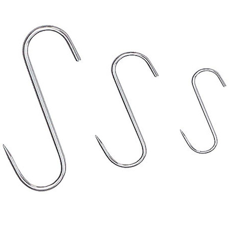 Cârligul măcelăresc prezentat este ideal atât pentru atelierele profesionale de prelucrare a cărnii, cât și pentru carmangeriile mici sau utilizarea casnică. Vârful ascuțit permite perforarea rapidă și fără probleme a cărnii, iar oțelul inoxidabil protejează unealta împotriva coroziunii și facilitează menținerea unui nivel ridicat de igienă. Grosimea de 4 mm garantează stabilitate și siguranță chiar și la manipularea porțiilor mari de carne.