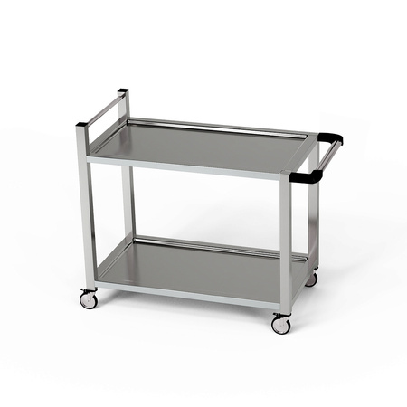 Cărucior pentru ospătari 2 rafturi cu două mânere mixte cu dimensiuni 100x70x85 cm din oțel inoxidabil J4.