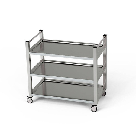 Cărucior pentru ospătari cu 3 rafturi cu mâner vertical cu dimensiuni 100x40x85 cm din oțel inoxidabil J4.