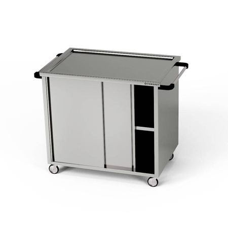 Cărucior pentru ospătari cu 3 rafturi cu mânere orizontale și ușă glisantă dulap cu dimensiuni 100x60x85 cm din oțel inoxidabil J4.