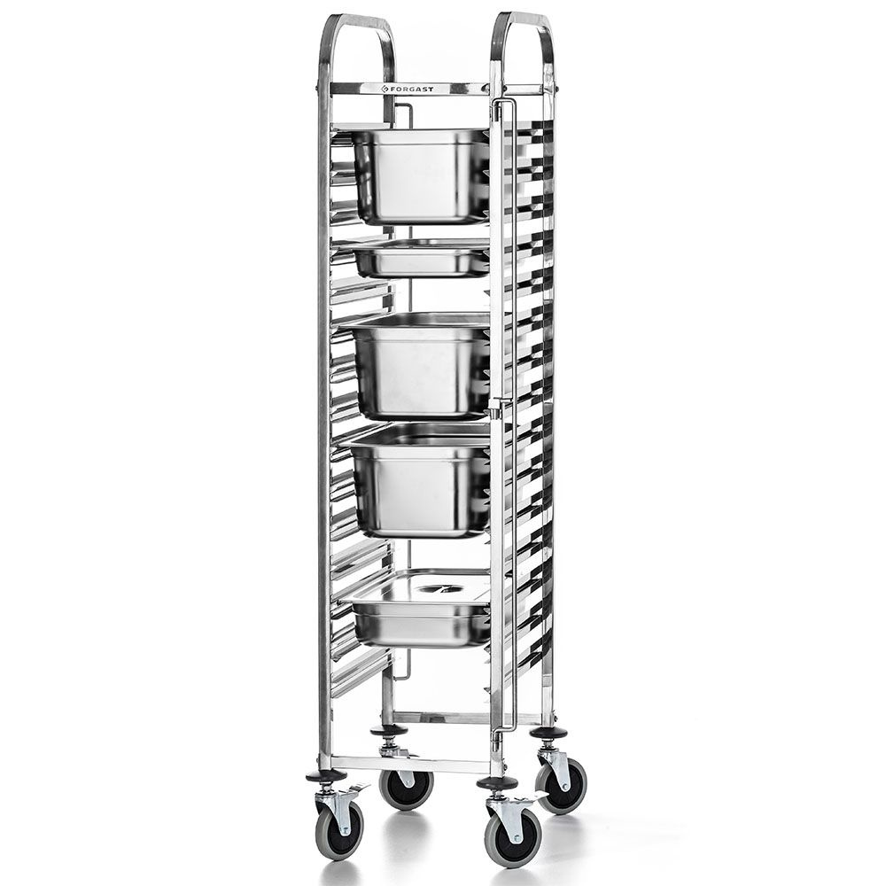 Caruciorul pliabil din inox pentru transportul recipientelor GN FORGAST FG01101 este o soluție practică și solidă pentru bucătăriile profesionale, cantine sau companii de catering. Permite transportul comod și sigur al unui număr mare de recipiente GN, iar construcția pliabilă facilitează depozitarea atunci când nu este folosit. Se remarcă prin durabilitate, rezistență la coroziune și stabilitate în utilizarea de zi cu zi.