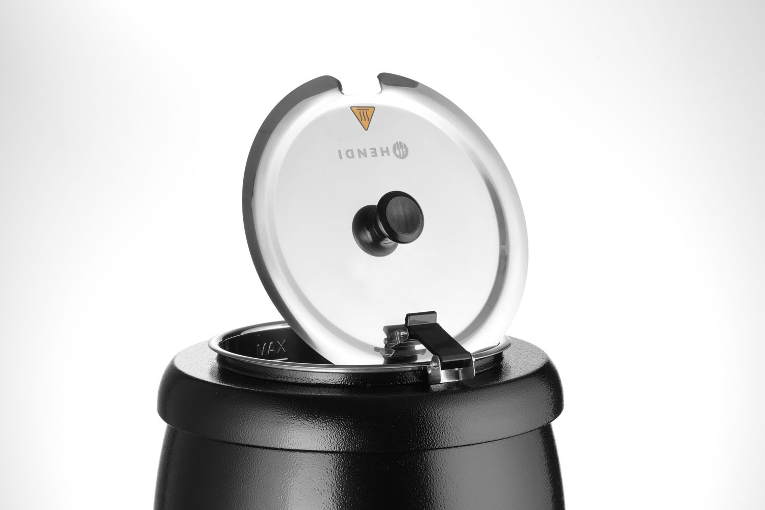 Ceaun electric pentru supe ideal pentru bufet. Carcasa este realizată din oțel vopsit în culoare neagră. Capac și recipientul pentru supă sunt fabricate din oțel inoxidabil.