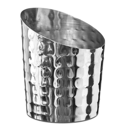 Mini farfurie, ceașcă din oțel satinat de la Forgast, ideală pentru porții mici, cum ar fi cartofii prăjiți. Un vas pentru un aranjament interesant și original pentru servirea gustărilor.