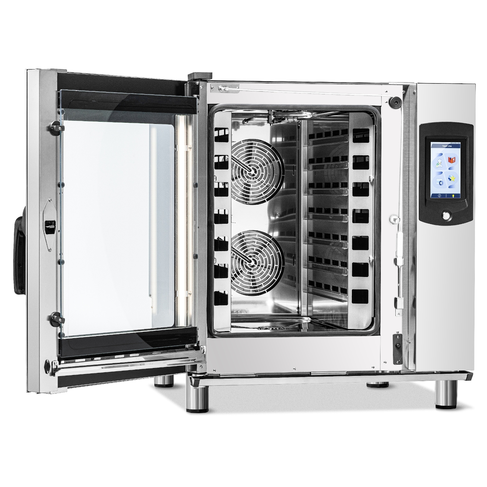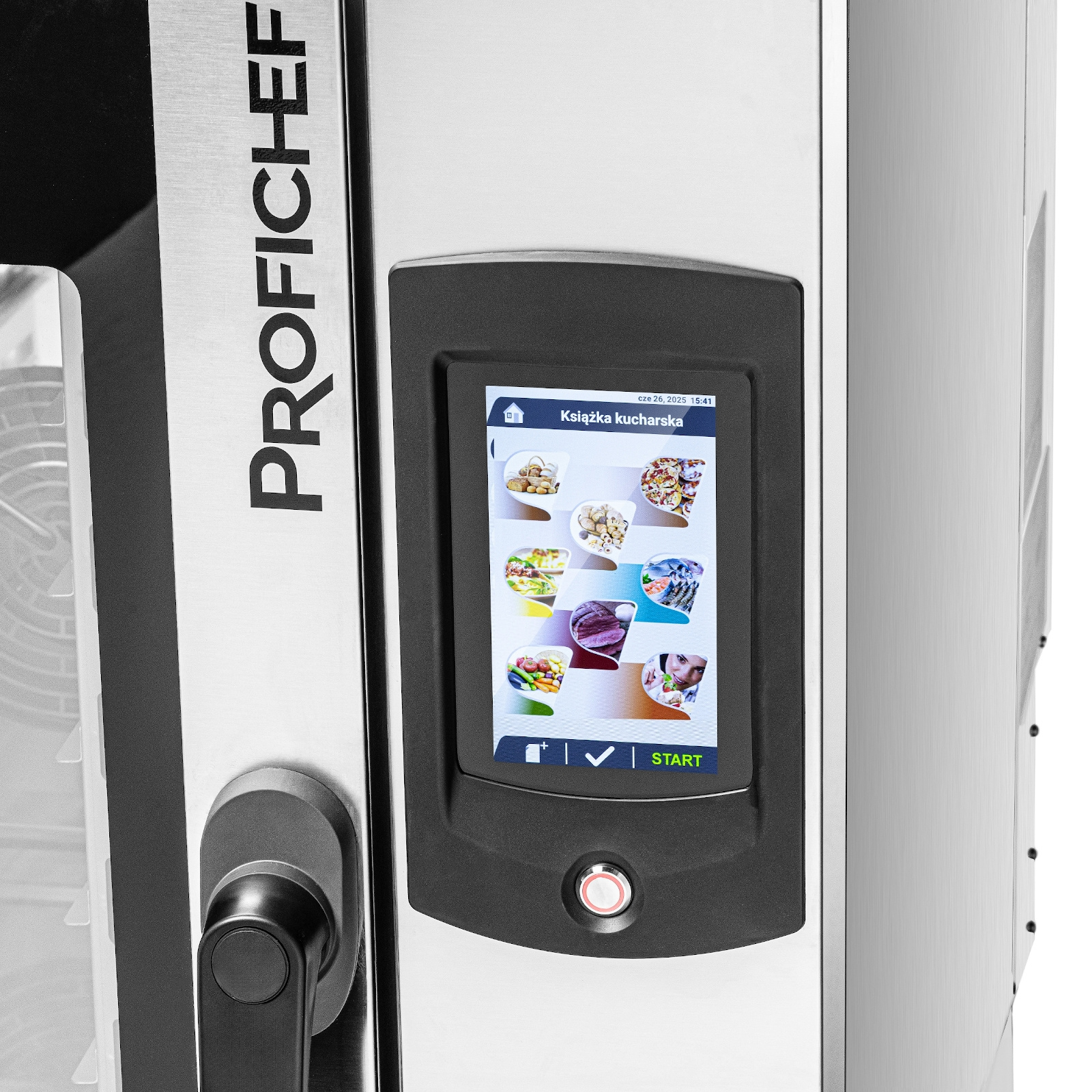 Cuptorul este livrat fără tăvi GN și cablu de alimentare, permițând adaptarea individuală a accesoriilor la nevoile locației. Setul include un sistem complet de spălare automată, sondă cu 3 puncte cu posibilitatea conectării unei a doua sonde și un panou de control LCD intuitiv în limba polonă. În plus, cuptorul dispune de sistem Android integrat cu conectivitate WiFi, permițând gestionarea ușoară a rețetelor și actualizări de la distanță.