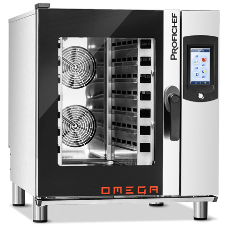 Cuptorul electric cu convecție și abur Omega 7 GN 1/1 PROFICHEF PCO211007 este un echipament gastronomic avansat, care combină tehnologia convecției și a aburului, oferind performanță maximă și versatilitate în bucătăriile profesionale. Se remarcă prin capacitatea mare de încărcare și sistemul modern de control, fiind alegerea ideală pentru restaurante, hoteluri și cantine, unde contează precizia, repetabilitatea și confortul în utilizare.