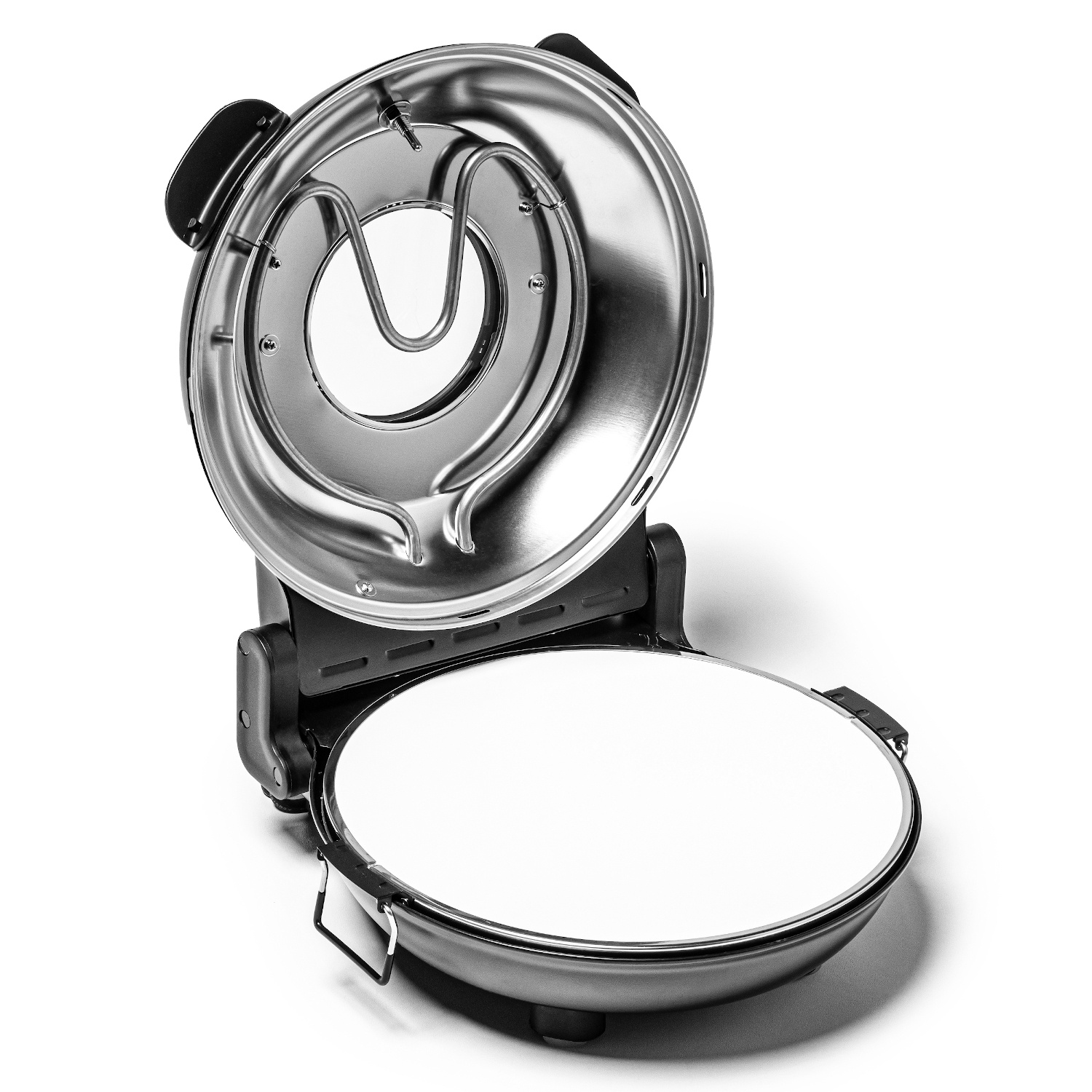 • Piatra refractară cu diametrul de 310 mm – asigură distribuția uniformă a căldurii, ceea ce duce la un rezultat profesional și la o structură asemănătoare pizzei coapte în cuptor cu lemne. Piatra refractară stochează excelent căldura, permițând obținerea unui blat crocant.