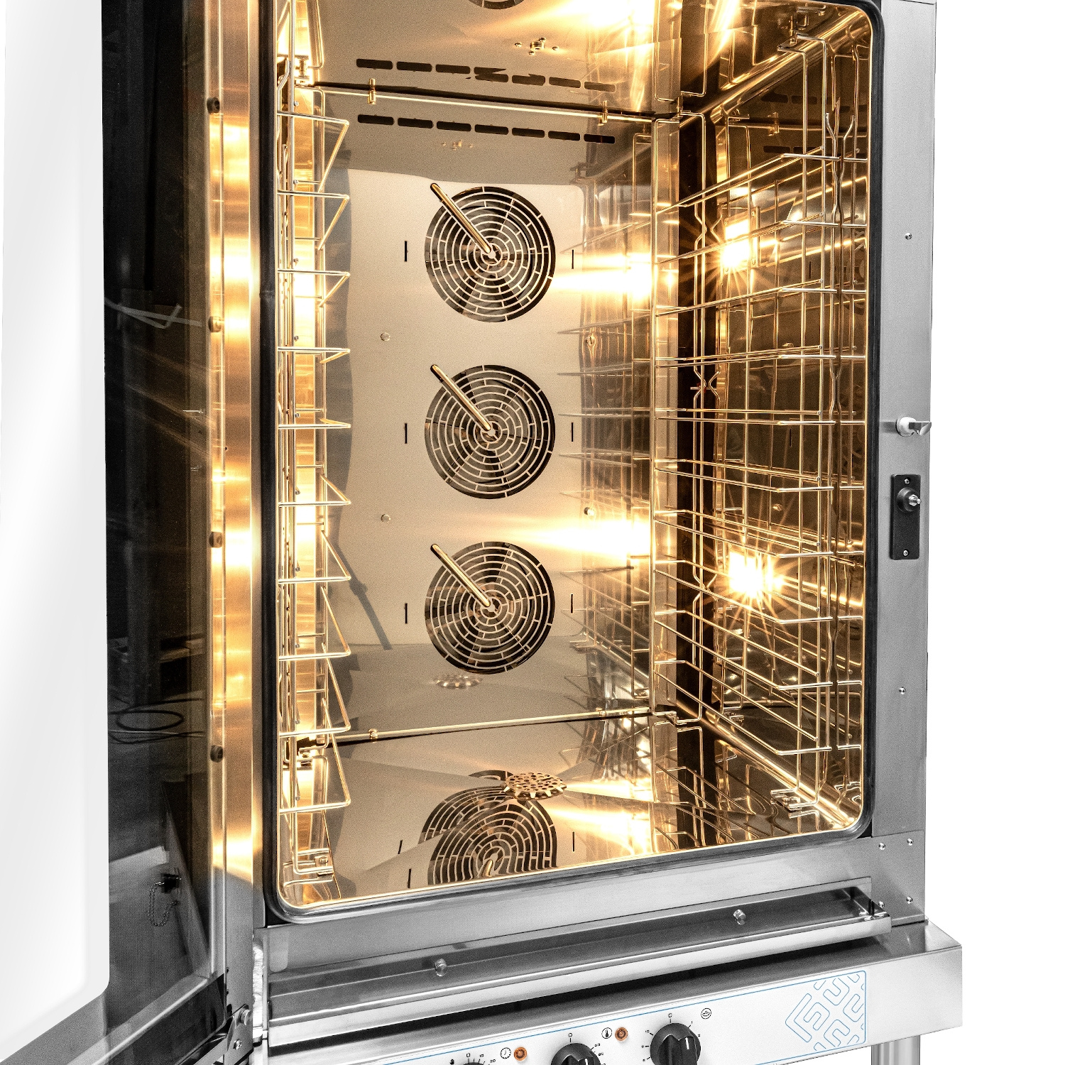 • Generarea aburului: pulverizare (injecție) - umidificarea precisă a camerei, ideală pentru prăjirea cărnii și a produselor de patiserie.