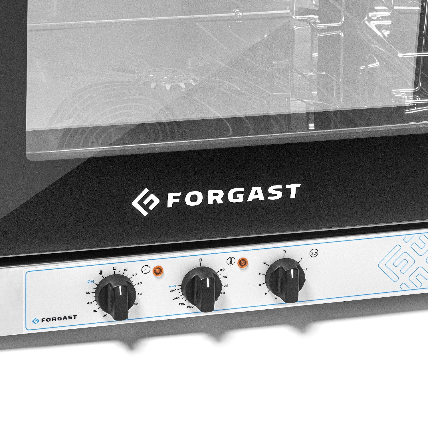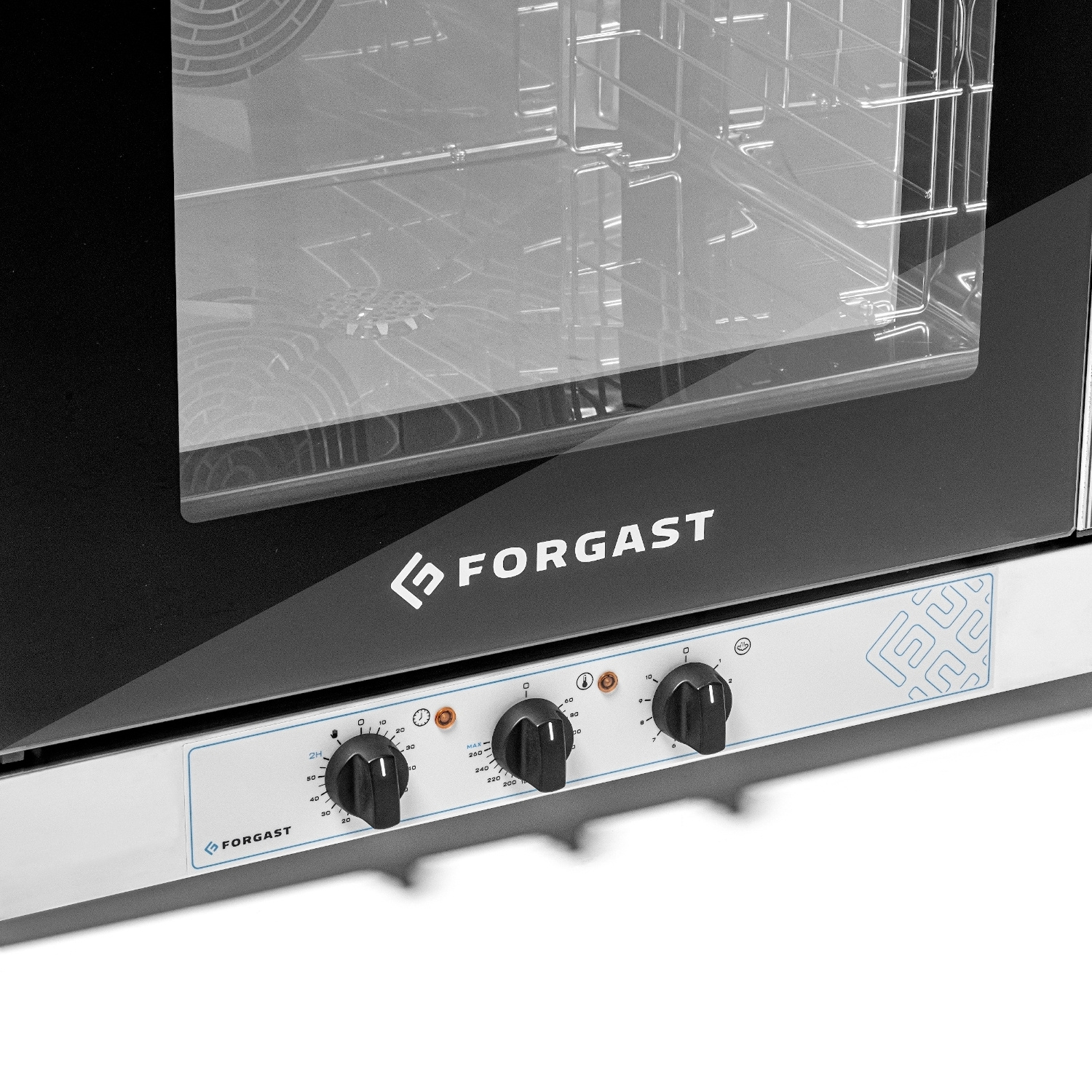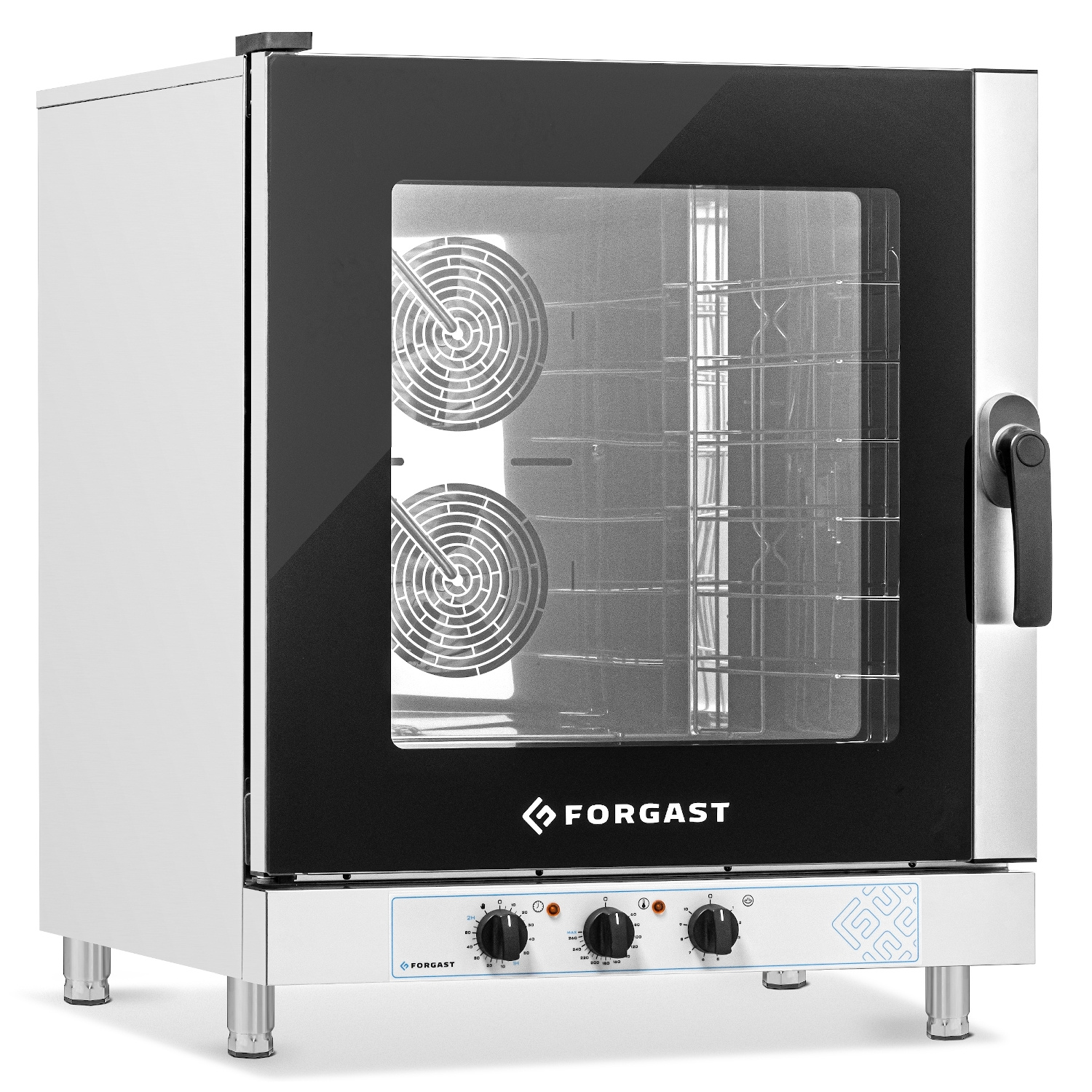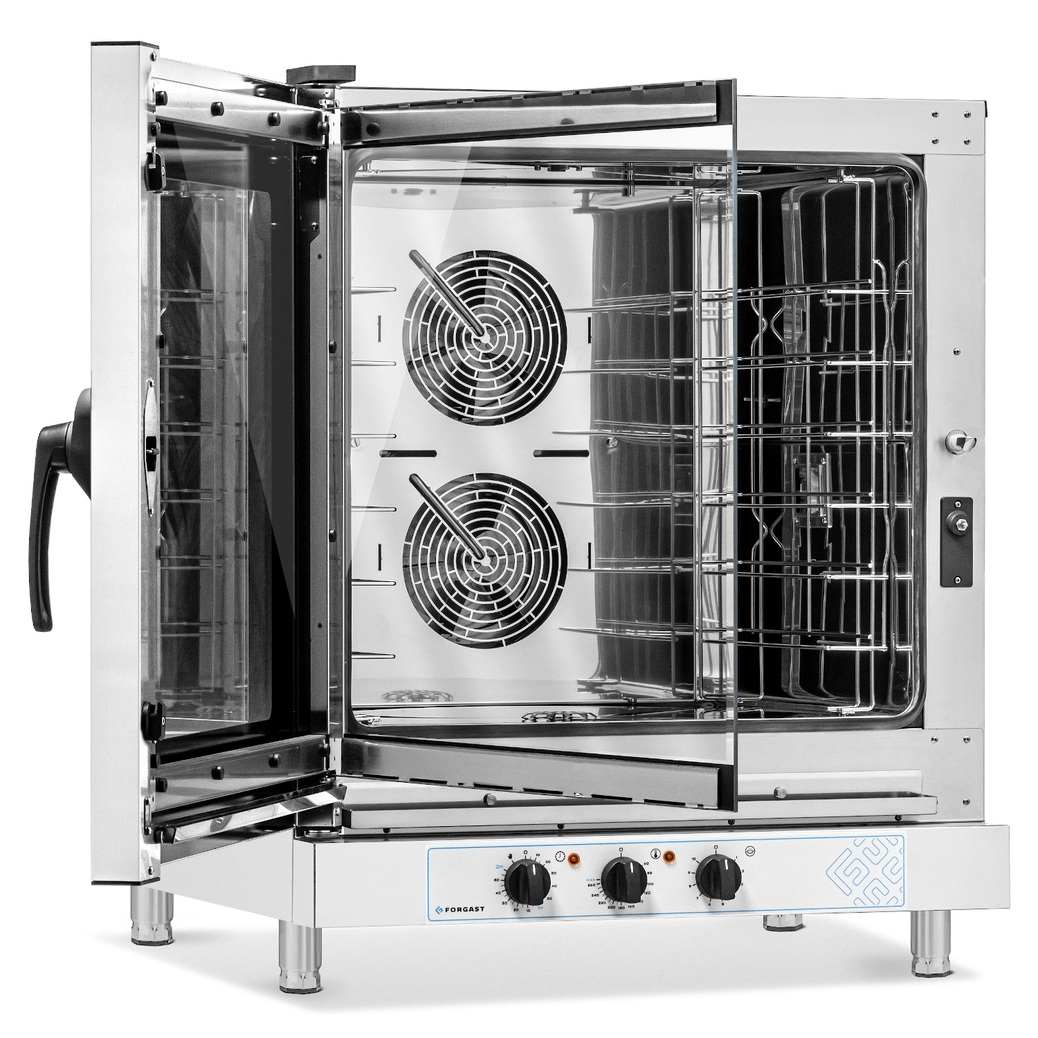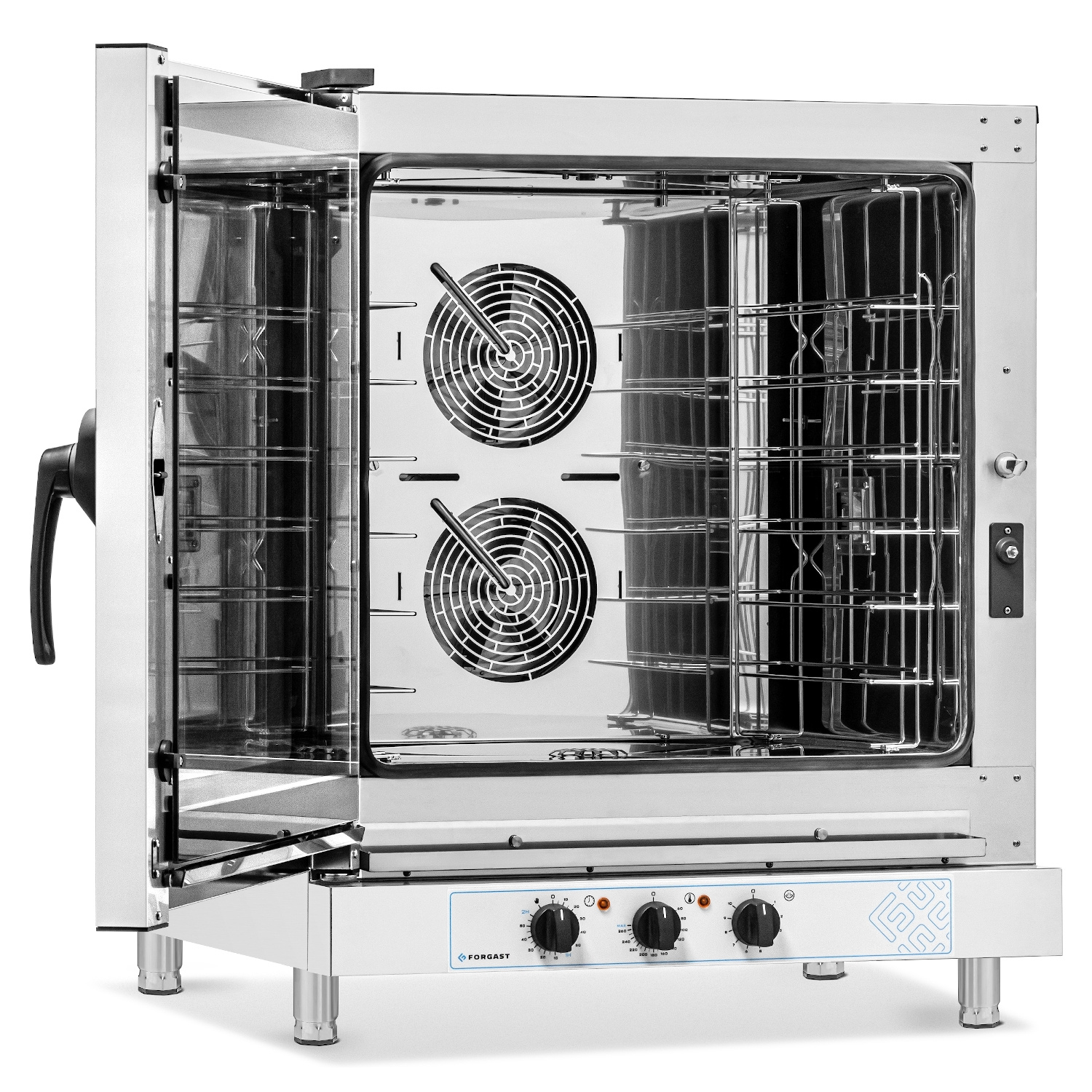 Cuptorul electric combinat FORGAST FG09522 este proiectat pentru utilizare intensivă în bucătării profesionale, brutării și patiserii. Pregătit pentru utilizare cu 6 recipiente GN 1/1 sau 6 tăvi de copt de 60x40 cm, se distinge prin versatilitatea și performanțele sale ridicate. Potrivit în special atunci când este importantă încălzirea rapidă, uniformă și posibilitatea de a pregăti mai multe feluri de mâncare în același timp pe niveluri diferite.