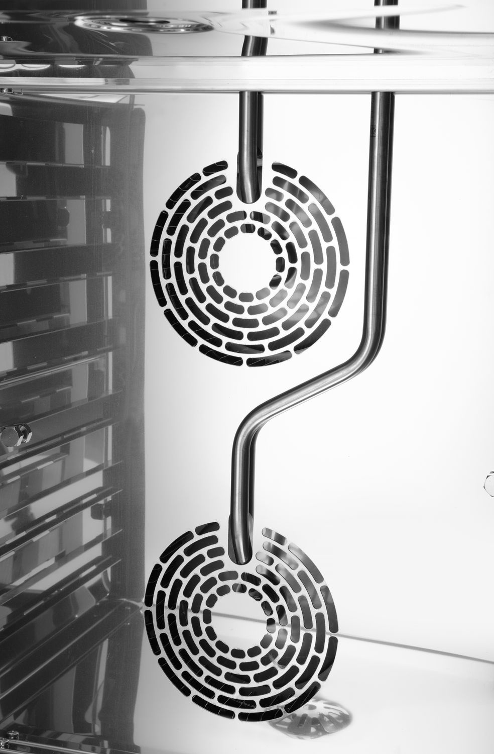 Vaporizator electric combinat Millenial Smart Gastro. Pregătit pentru 7 tăvi GN 1/1. Acesta are 3 butoane care sunt utilizate pentru: reglarea timpului de la 10 la 120 de minute sau funcționarea non-stop, reglarea temperaturii 100°C până la 275°C, 5 trepte de reglare a aburului camerei. Ușile cu geam dublu au o blocare a deschiderii care protejează operatorul de mișcări necontrolate. Sigiliul ușii este fabricat din silicon durabil, ușor de înlocuit de către dvs. Canalizare sub ușă. Iluminare cu LED-uri în cameră. Carcasa izolată a cuptorului economisește energie electrică. Camera, precum și carcasa cuptorului sunt fabricate din oțel inoxidabil. Aragazul poate fi nivelat cu ajutorul picioarelor reglabile. Este necesară racordarea la electricitate, apă tratată și canalizare.