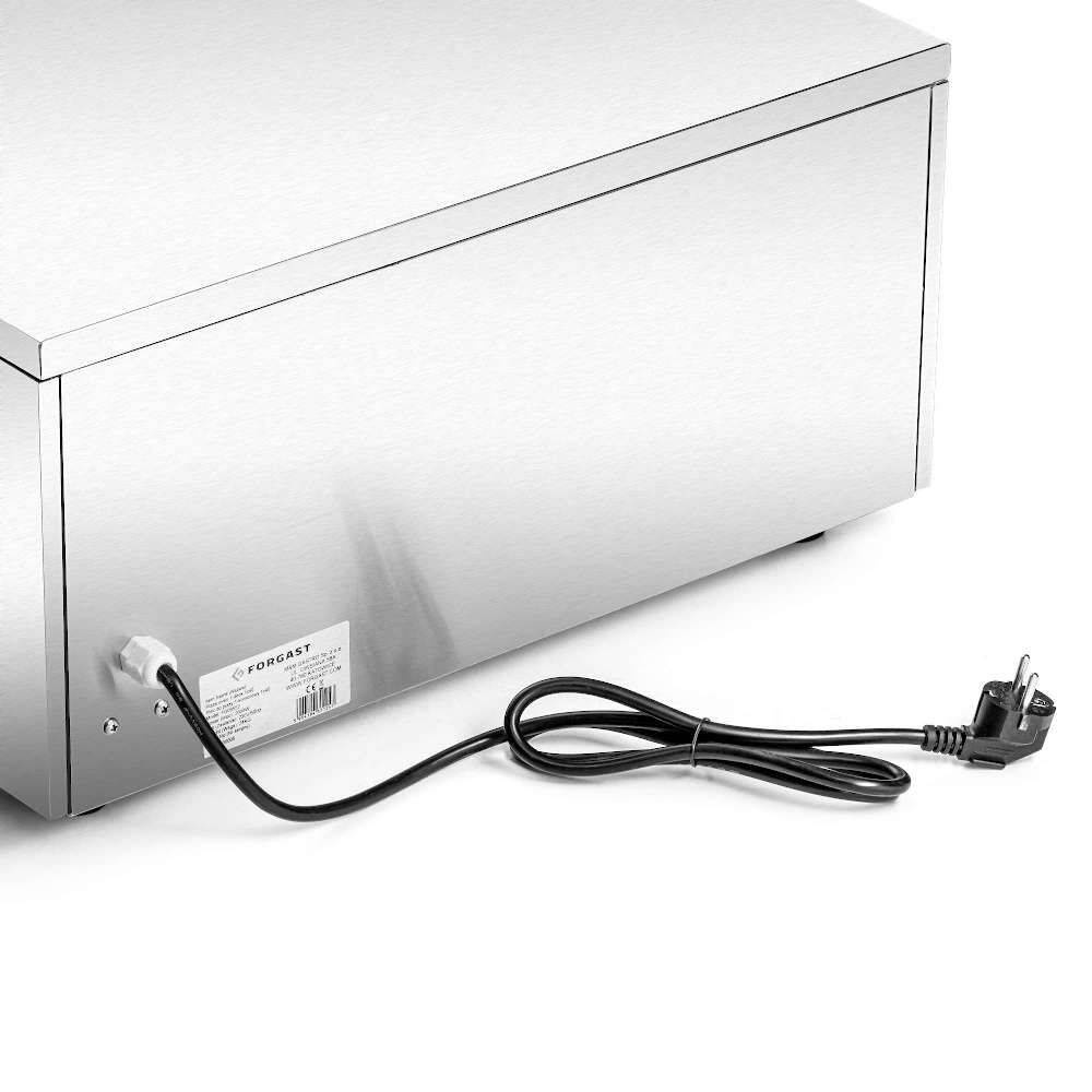 Aplicare și construcțieCuptorul pentru pizza este ideal pentru unitățile de catering unde viteza și calitatea serviciilor contează, economisind în același timp spațiu. Deschiderea de alimentare înaltă de 11 cm permite introducerea și scoaterea alimentelor în mod convenabil, crescând eficiența. Construcția robustă din oțel inoxidabil și piatra chamotte fac unitatea rezistentă la utilizarea intensivă și asigură o coacere uniformă, chiar și sub sarcini grele. Setul include un cuptor de pizza cu un set de încălzitoare, o piatră chamotte și un cronometru integrat, care permite o pornire rapidă atunci când este conectat la sursa de alimentare. De ce să alegeți un cuptor pentru pizza FORGAST FG09552 cu 1 cameră 1x40 cm?Acest aparat combină dimensiunea compactă, performanța profesională și robustețea, fiind soluția perfectă pentru cei care doresc să servească pizza de înaltă calitate și alte produse de patiserie chiar și într-o unitate mică. Controlul precis al temperaturii, operarea intuitivă și ușurința de curățare fac cuptorul potrivit atât pentru începători, cât și pentru bucătari experimentați. Prin alegerea acestui model, investiți în fiabilitate, economie de spațiu și versatilitate pentru aplicații de catering. |