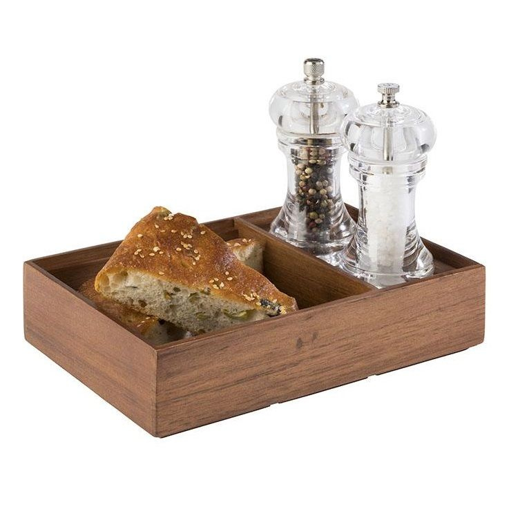 Cutia din lemn Woody este un accesoriu practic și elegant pentru organizarea mesei sau a barului, realizat din lemn de salcâm durabil. Produsul este echipat cu două compartimente separate, ceea ce permite separarea convenabilă a tacâmurilor, condimentelor sau șervețelelor. Este ideală atât pentru restaurante, cât și pentru aranjamentele de masă din locuință.