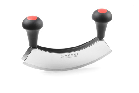 Cuțit pentru tocat ierburi cu lamă dublă.Lama este realizată din oțel inoxidabil, iar mânerul din polipropilenă. Poate fi spălat în mașina de spălat vase.
