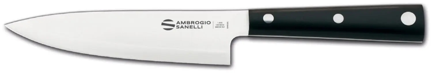 Cuțitul șefului de bucătărie Hasaki de la Ambrogio Sanelli este o combinație de precizie, durabilitate și confort. Ideal pentru profesioniști și pasionați de gătit care apreciază fiabilitatea și estetica în bucătărie. Este un instrument care va mulțumi pe oricine caută perfecțiunea în tăiere.