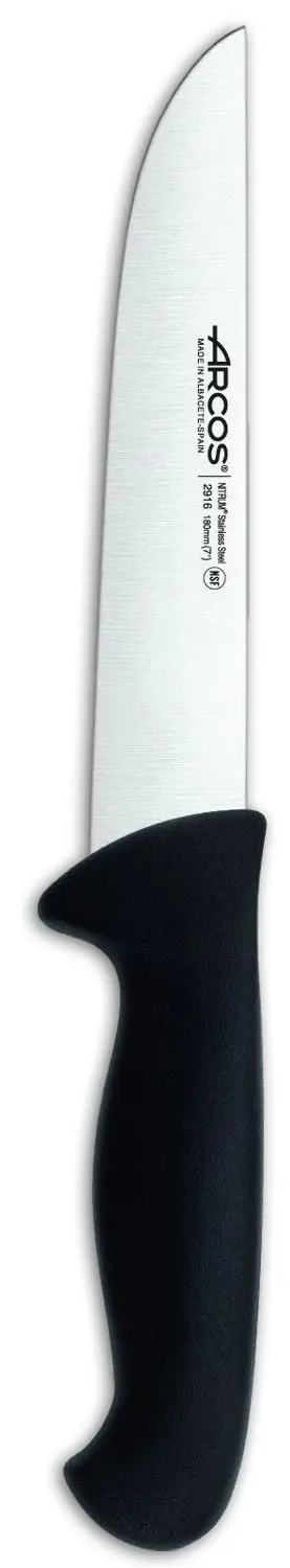 Cuțitul de măcelar din seria 2900 de la Arcos este un instrument profesional proiectat pentru tranșarea și felierea precisă a bucăților mari de carne. Fabricat în Spania, cuțitul se remarcă printr-o lamă puternică și stabilă realizată din tablă laminată din oțel inoxidabil inovator NITRUM®, care garantează o duritate crescută și rezistență la coroziune. Durabilitatea și eficiența sa excepțională îl fac alegerea ideală pentru bucătari și măcelari. Mânerul cuțitului este proiectat ergonomic, realizat din polipropilenă, turnată direct pe tija cuțitului, ceea ce consolidează suplimentar construcția cuțitului. Suprafața rugoasă, texturată a mânerului cu tehnologie anti-alunecare previne alunecarea cuțitului din mână, asigurând o priză sigură chiar și în condiții dificile de lucru. Acoperirea BACTIPROOF SILVER® minimizează acumularea bacteriilor, crescând nivelul de igienă la locul de muncă.