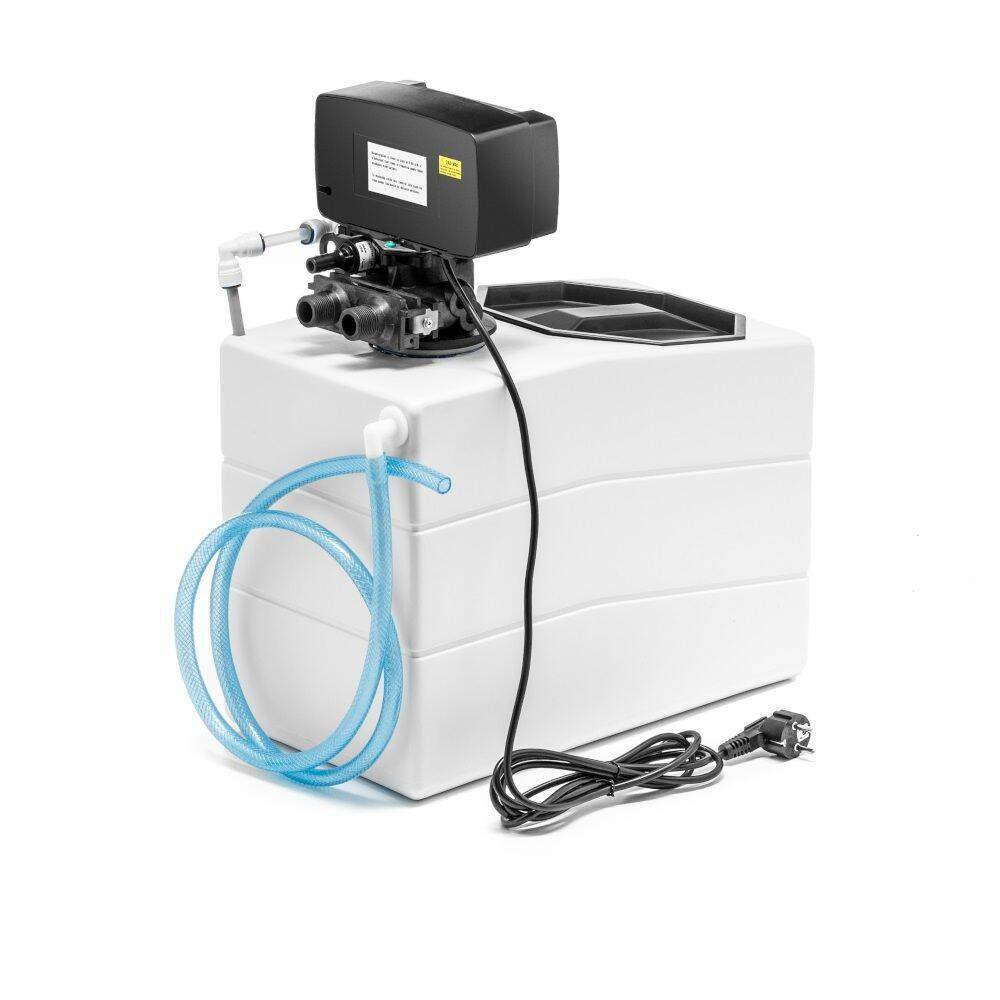 Dispozitivul este echipat cu un rezervor generos pentru sare de regenerare, cu o capacitate de 20 kg, ceea ce permite operarea îndelungată fără necesitatea alimentării frecvente. În practică, aceasta înseamnă confort în utilizare și economie de timp în exploatarea zilnică. Înmuietorul gestionează automat procesul de regenerare, iar utilizatorul trebuie doar să monitorizeze nivelul sării în rezervor. Datorită acestei soluții, dispozitivul este aproape fără întreținere, ceea ce este deosebit de important în locurile cu volum mare de lucru.