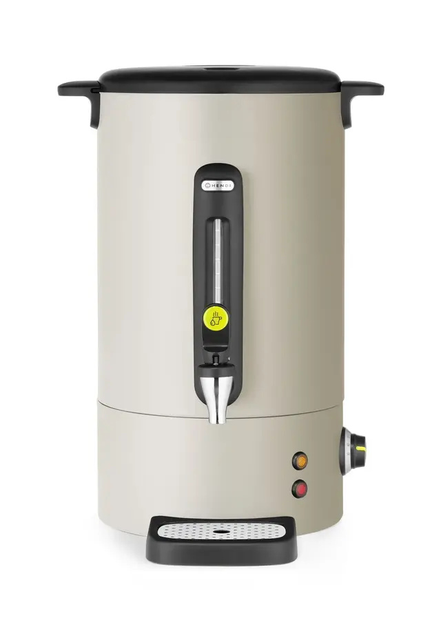 Răcitor de apă marca HENDI este un aparat elegant și funcțional care este perfect pentru orice bufet sau bar modern. Conceput de celebrul designer olandez Robert Bronwasser, acesta are un design elegant care combină estetica cu soluțiile practice. Este echipat cu un robinet care nu picură și o tavă de picurare atașată de un magnet, ceea ce îl face ușor de păstrat curat atunci când servește băuturi. Un indicator de nivel al apei din sticlă permite controlul ușor al cantității de lichid din aparat, iar un mod automat de menținere la cald asigură că băuturile vor fi întotdeauna la temperatura potrivită. Este ideal pentru fierberea apei, precum și pentru încălzirea vinului fiert, ceea ce îl face un aparat versatil în orice bucătărie.