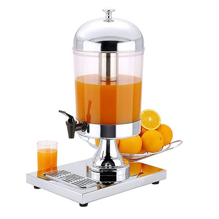 Dispenserul pentru sucuri este un dispozitiv practic destinat servirii băuturilor reci în restaurante, hoteluri, bufete sau în timpul diverselor evenimente. Produsul se remarcă prin capacitatea mare de 8 litri, construcția solidă din oțel inoxidabil și robinetul comod din plastic, ceea ce asigură ușurință în utilizare și durabilitate.
