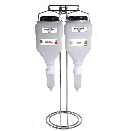 Dozatorul profesional dublu pentru sosuri CONTACTO 1463/002 este un echipament gastronomic funcțional, creat pentru dozarea rapidă și igienică a sosurilor în restaurante, baruri și la evenimente mari. Se remarcă prin capacitatea mare și construcția stabilă, ceea ce îl face ideal oriunde contează eficiența și confortul utilizării.