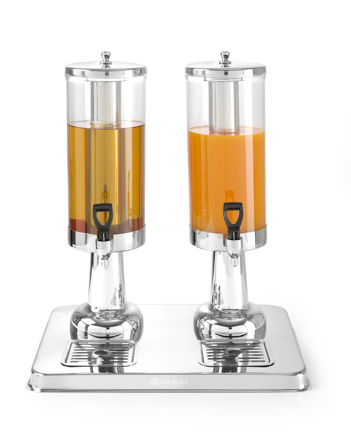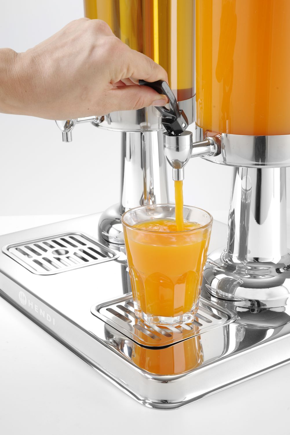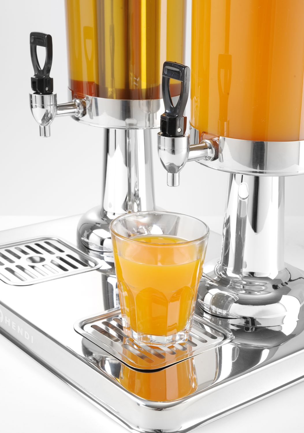 Dozator dublu pentru sucuri, cu o capacitate de 2x3 l. Dispune de un recipient din oțel pentru gheață care răcește băutura. Tavă de scurgere ușor de curățat. Rezervorul pentru suc este realizat din policarbonat. Robinet care nu picură.