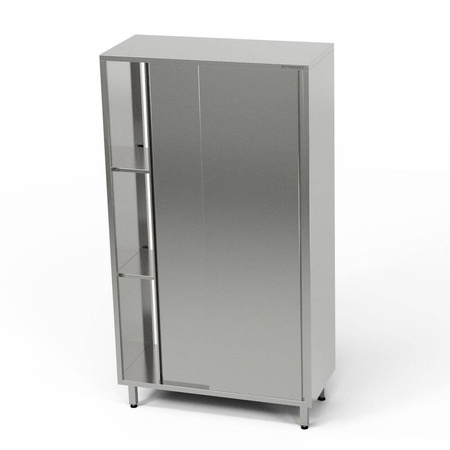 Dulap de trecere cu dimensiunile 130x60x180 cm din oțel inoxidabil J4. Există 2 rafturi în dulap. Uși glisante.
