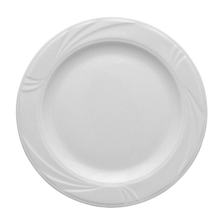 Farfuria întinsă Lubiana Arcadia cu diametrul de 19 cm este un element clasic al serviciului de masă din porțelan, ideal atât pentru servirea deserturilor, cât și a aperitivelor. Se remarcă printr-un relief subtil și delicat, precum și printr-o formă elegantă și rotunjită, ceea ce o face să arate excelent pe orice masă – atât în intimitatea casei, cât și în sala unui restaurant.