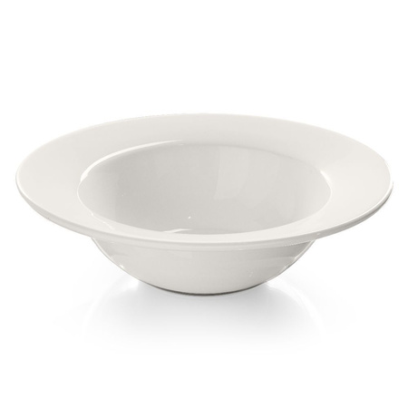 Farfuria pentru paste din porțelan Modermo Prima, diam. 27 cm MODERMO MP028 este un vas de înaltă calitate destinat servirii profesionale a preparatelor pe bază de paste. Se remarcă prin culoarea sa clasică, crem, și rezistența excepțională datorită unui amestec special de porțelan cu adaos de alumină. Este ideală pentru restaurante hoteliere, săli de evenimente sau firme de catering, unde contează estetica și fiabilitatea vaselor.