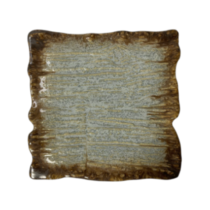 Farfuria plată dreptunghiulară Moku topaz 30 x 30 cm KERA CERAMIKA 16.5.TOPAZ este un vas elegant realizat din ceramică de înaltă calitate, proiectat pentru iubitorii bucătăriei japoneze și ai esteticii asiatice. Aspectul original, culoarea expresivă topaz și textura neregulată evidențiază perfect prezentarea preparatelor servite, precum sushi, sashimi sau aperitive.